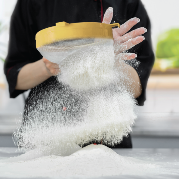 - Cadre robuste avec crochets suspendus : permet de placer le tamis sur les bols ;