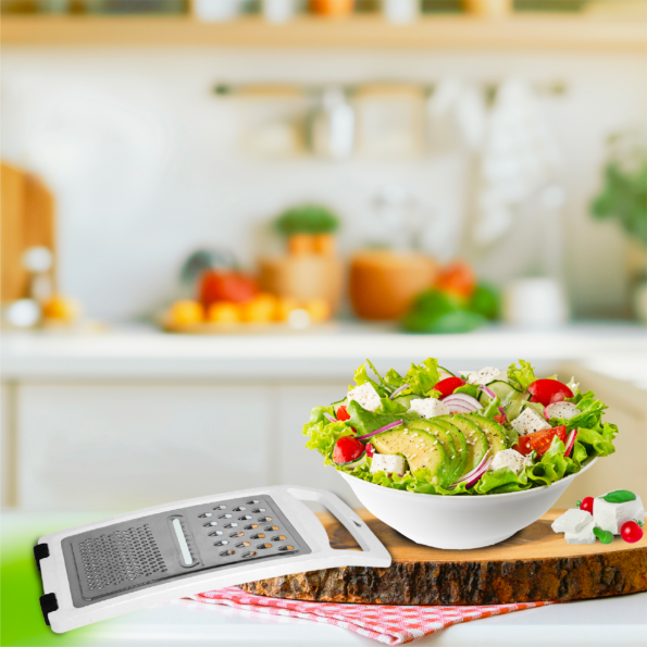 Grâce à ses différents tranchants, la râpe universelle Lamacom permet de trancher, ainsi que râper des légumes, du fromage à pâte dure, des fruits, du chocolat ou des épices.