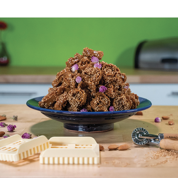 Conçue pour découper la pâte avec des motifs cannelés, la roulette à pâte Lamacom vous permet de réaliser du Chebakia et d’autres délices en un seul geste.